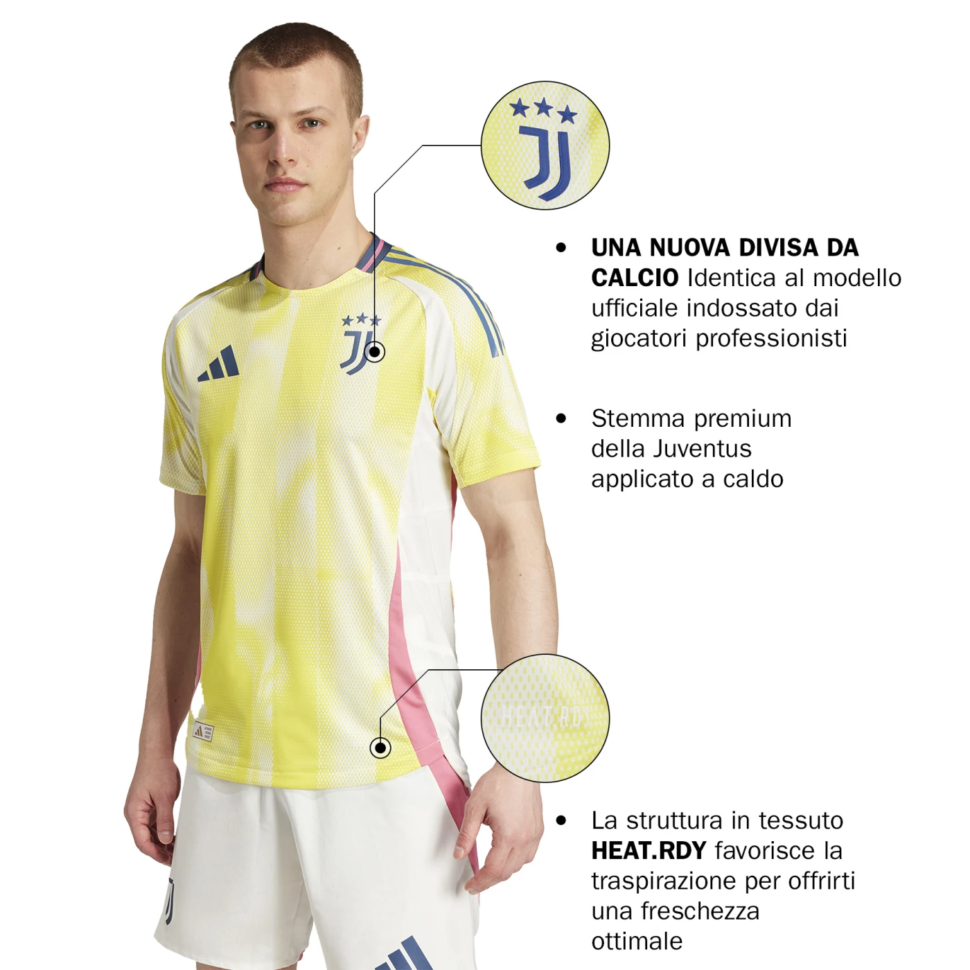 Boldly exploring a brand-new look for the club, this Juventus Away Authentic jersey shoots for the stars in bright colours. More familiar elements like that heat-applied badge and those subtle stripes bring the look back down to Earth but, at its core, this adidas shirt is built for adventure. Its advanced HEAT.RDY tech and streamlined fit mean it’s engineered for light-speed football.