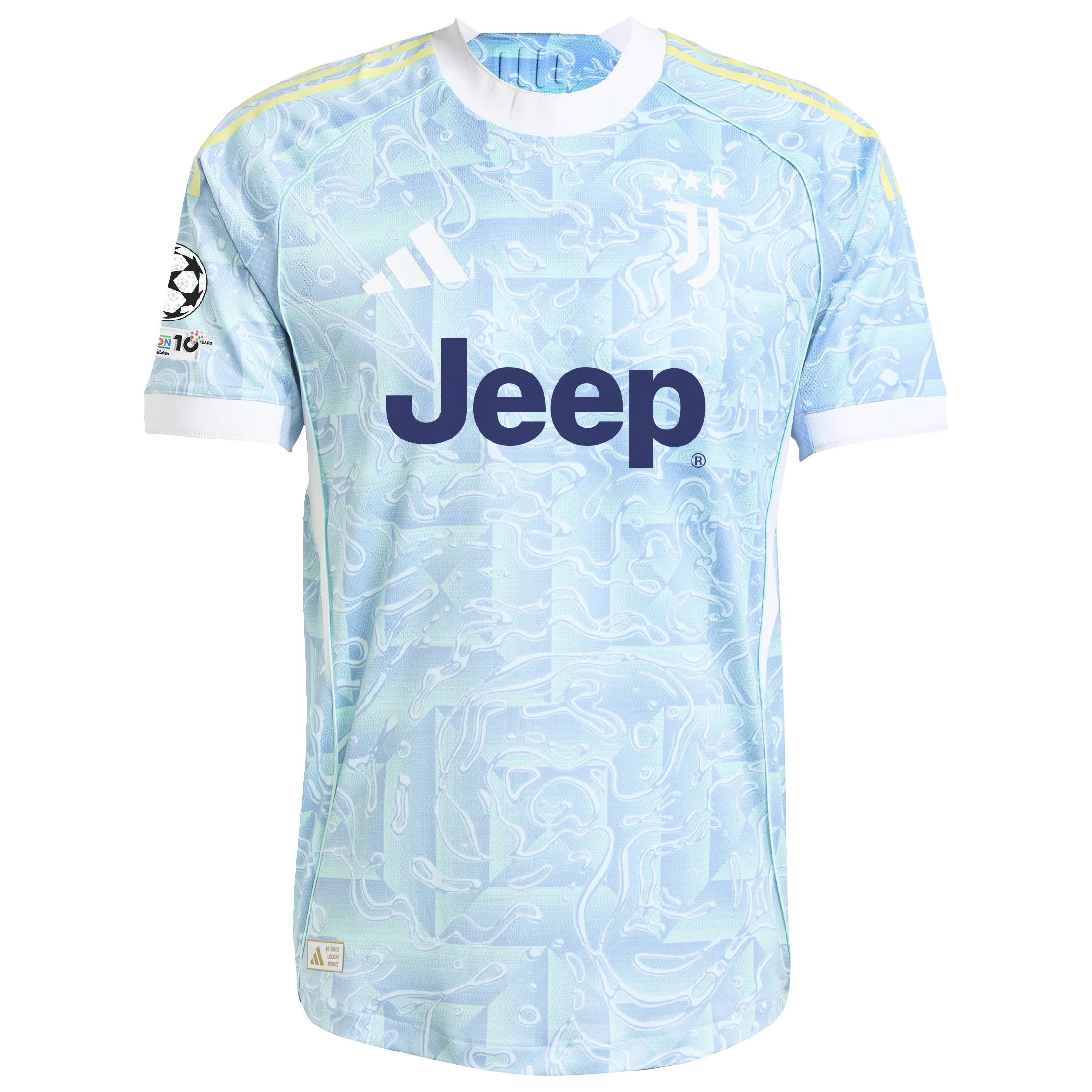 Showing off blue pastel shades and flashes of yellow and white inspired by the Turin city flag, this adidas Juventus authentic jersey is sure to make a splash on match days.