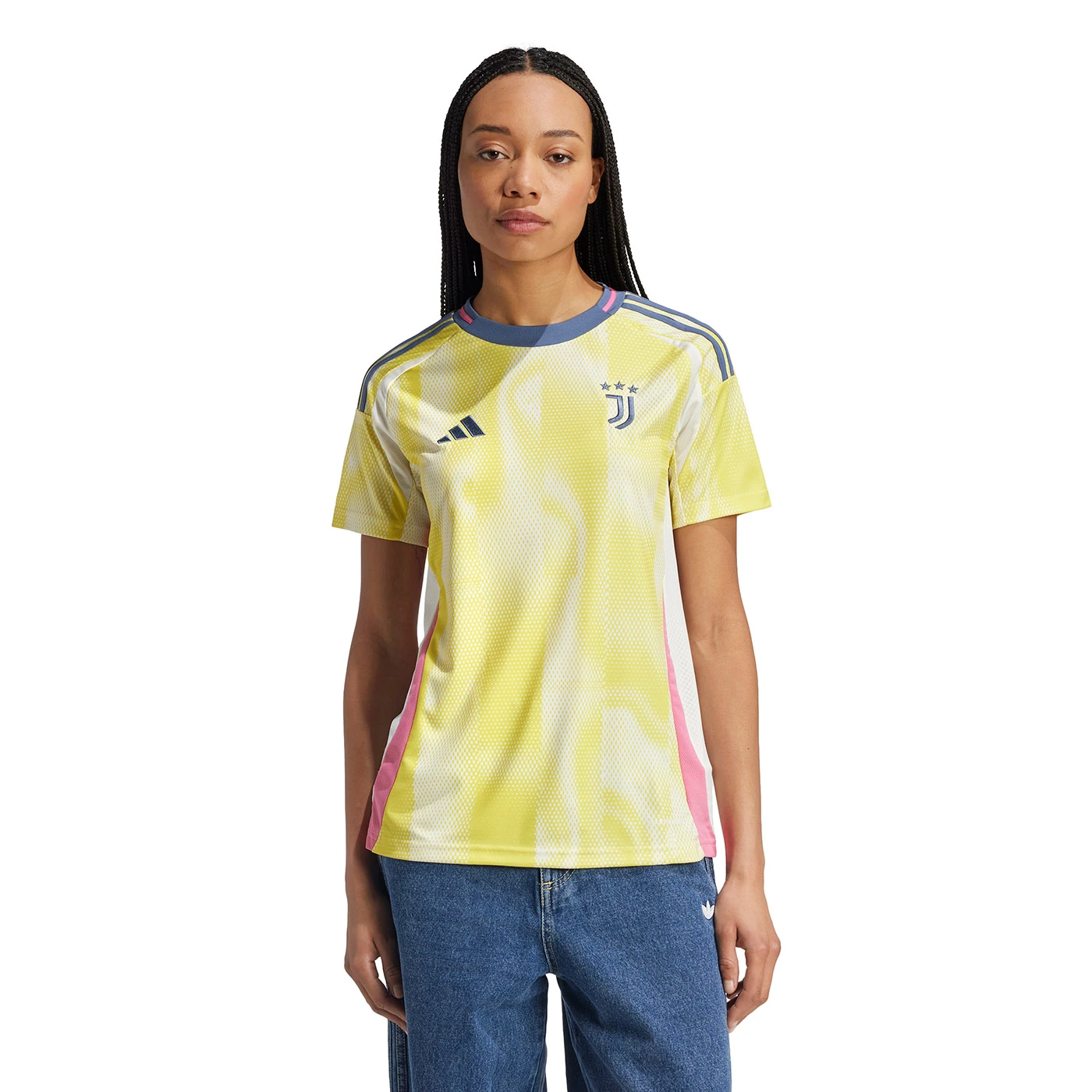 Boldly exploring a brand-new look for the club, this Juventus away jersey shoots for the stars in bright colours. More familiar elements like that embroidered badge and those subtle stripes bring the look back down to Earth but, at its core, this adidas shirt is built for adventure. AEROREADY tech manages moisture to keep football fans feeling at home.