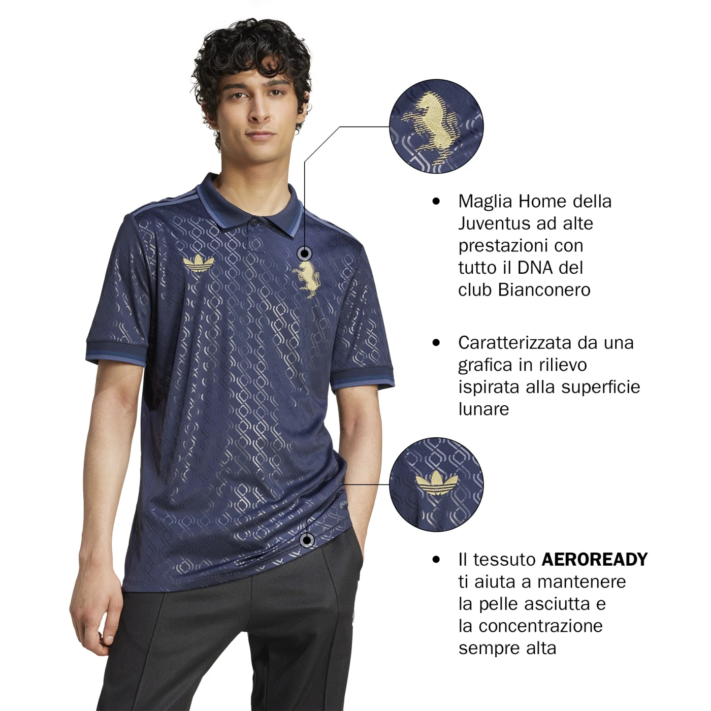 Inspired by the endless majesty of the night sky, it’s dressed in navy with embossed, crest-inspired graphics. Golden details include an iconic adidas Trefoil and a classic club badge. Built for zero-distraction supporting, this football shirt also sports moisture-managing AEROREADY. Heaven-sent style meets high-end comfort in this elegant Juventus third jersey.